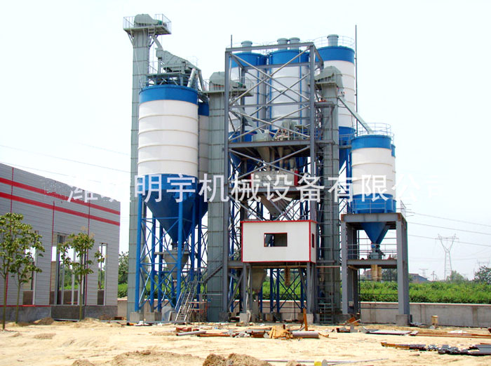 大型预拌砂浆生产线,主要由原料储存仓、配料系统、待混仓、2-6立方主混合机、原料储存仓、输送机、电脑自动计量包装机(适应于阀口袋)、电控系统等组成。适应于普通干混砌筑砂浆的生产(如:抹灰砂浆、砌筑砂浆地坪砂浆、装饰砂浆、防水砂浆等)。混合机内胆和机件全部采用专用耐磨材料制造,耐磨性特别强,使用寿命长,具有国内同类产品不可比拟的优越性,在同行业中占据重要地位。整套设备性能稳定,物料混合均匀,具有能耗低、投资少、见效快、占地小、操作简单等诸多优点,5-8人即可操作,每次可以混合砂浆4-6吨,每小时可生产20-40吨左右。